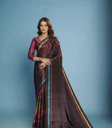 Purple color malai crepe art silk fabric beautiful digital printed saree