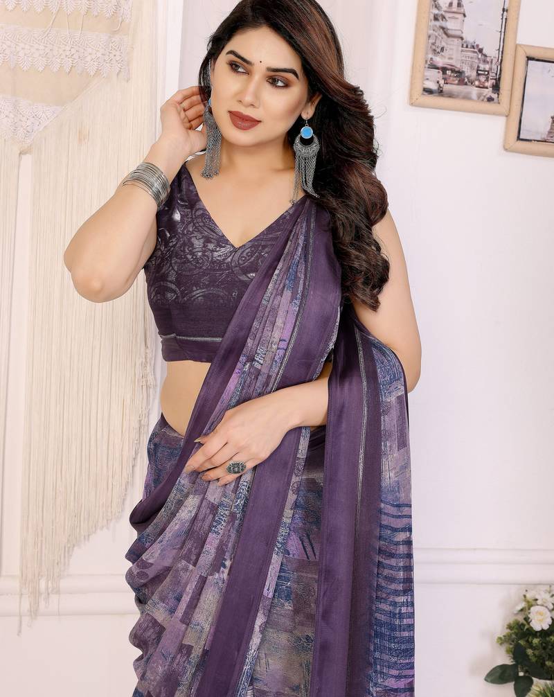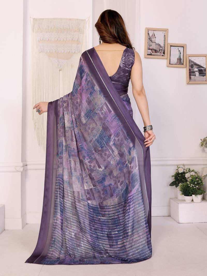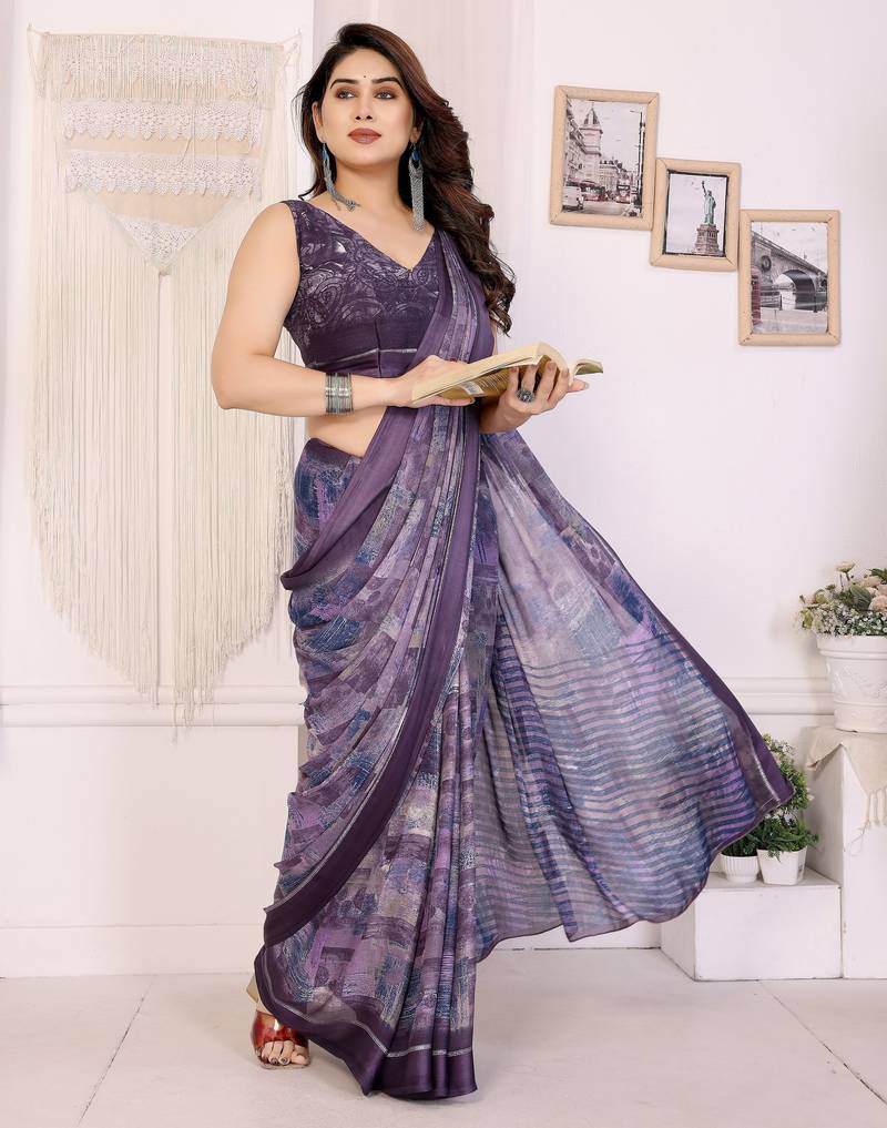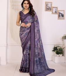 | Product Name | Purple Color Moss Satin Patta Fabric Designer Printed Saree | |