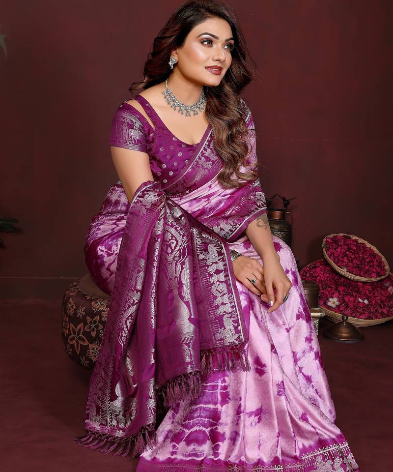 | Product Name | Purple Color Satin Silk Fabric Saree For Ethnic Indian Looks | |