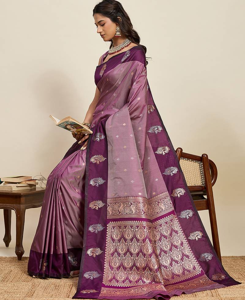 Purple color soft art silk fabric designer ethnic woven traditional saree