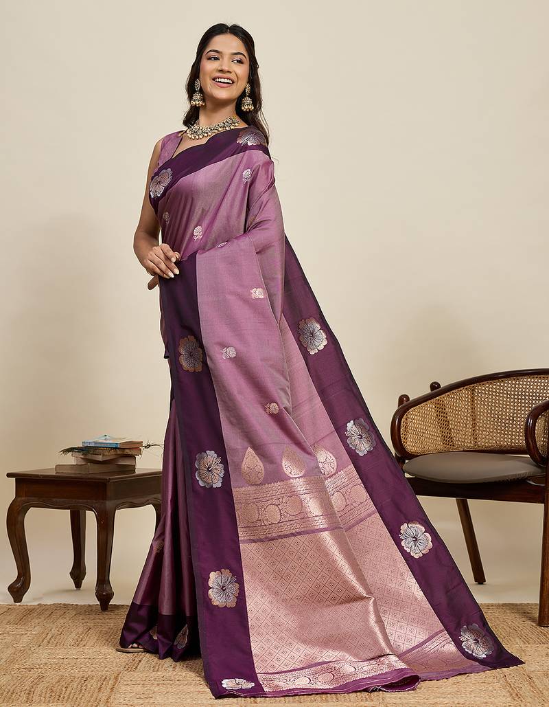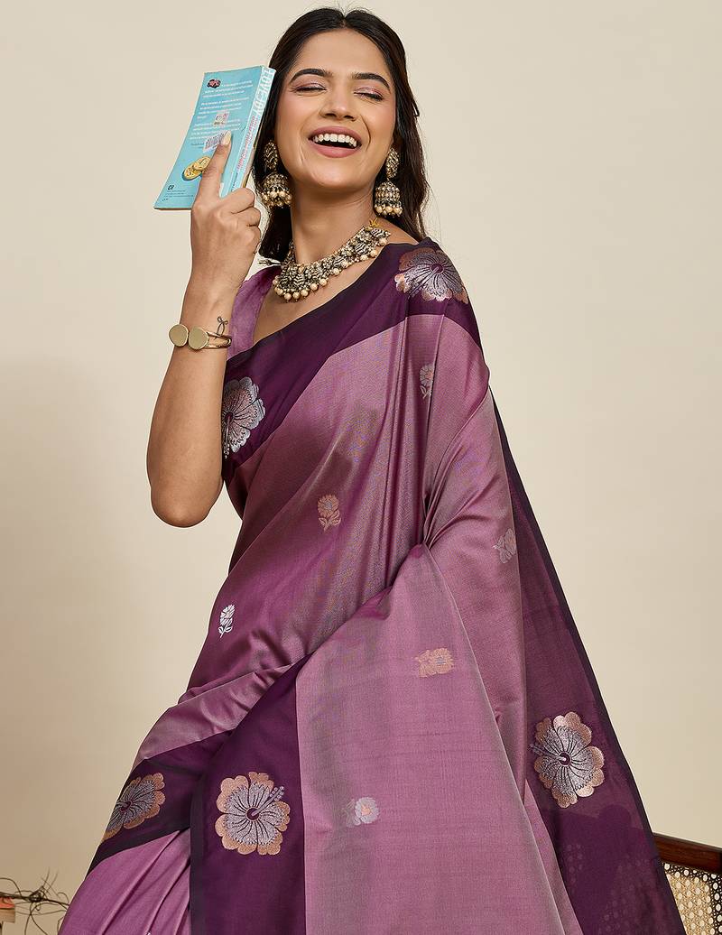 Purple color soft art silk fabric woven jari designer ethnic indian saree