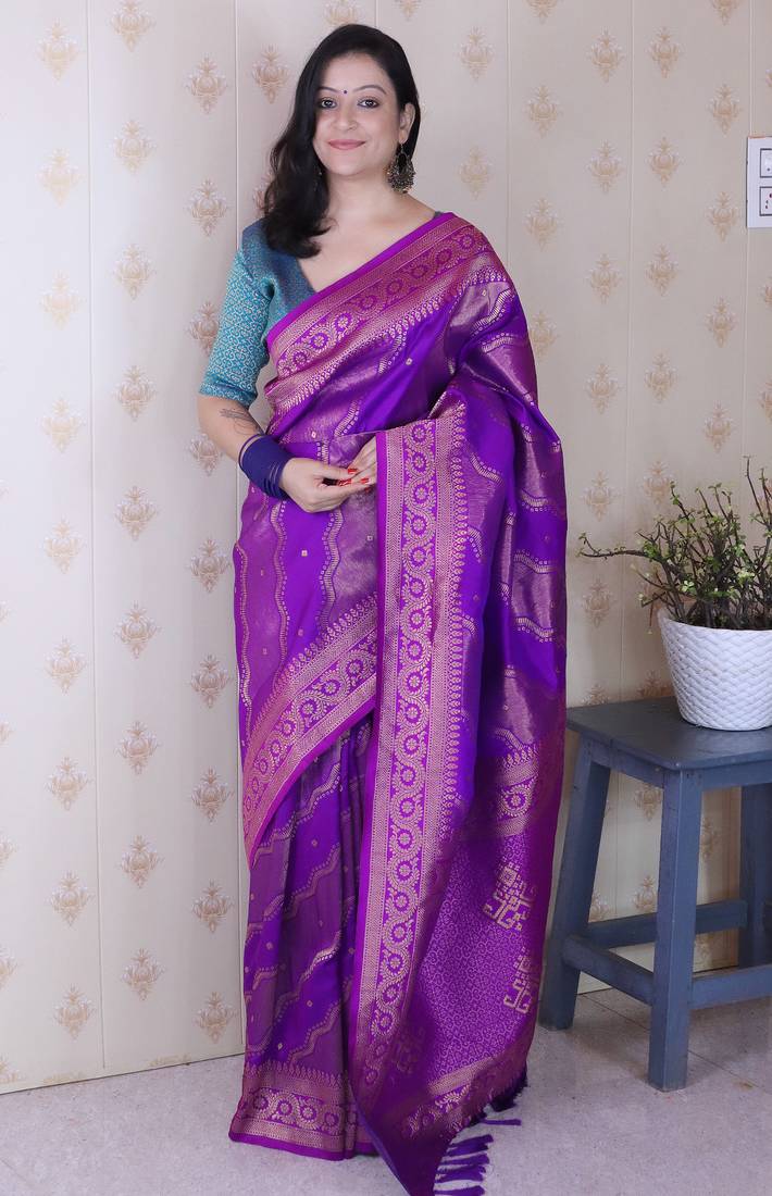 | Product Name | Purple Color Soft Silk Blend Woven Jari Designer Ethnic Partywear Saree | |