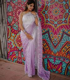 Purple color trendy fendy satin fabric pedding with beads hand work saree