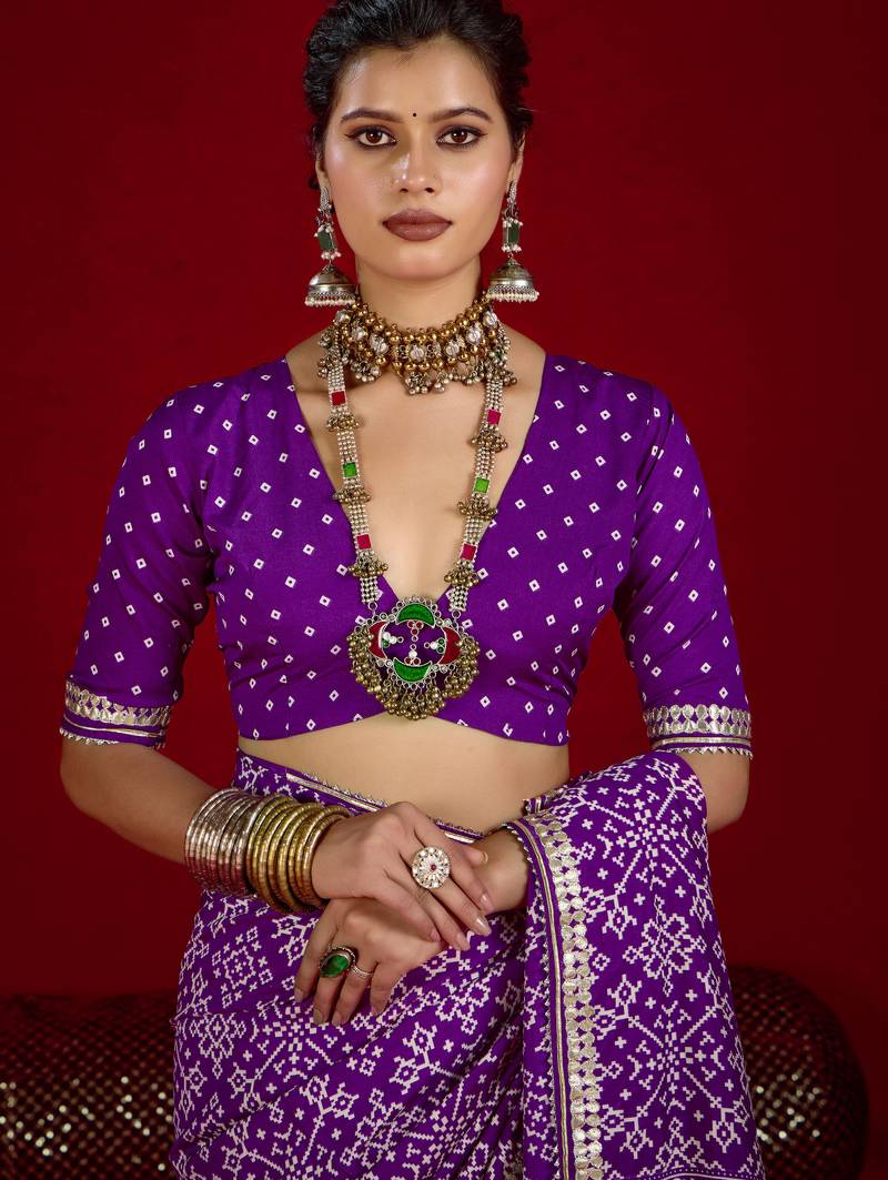 | • | Saree | : | Color- Purple / Fabric- Silk Blend |