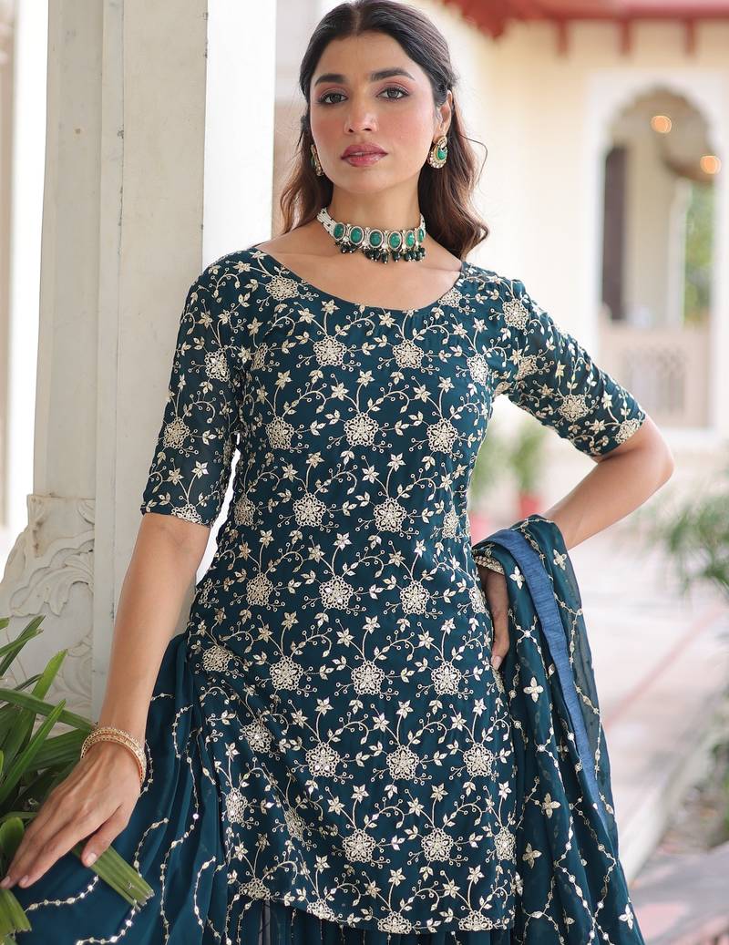 Rama color faux georgette fabric glamorous sequins designer partywear sharara dress