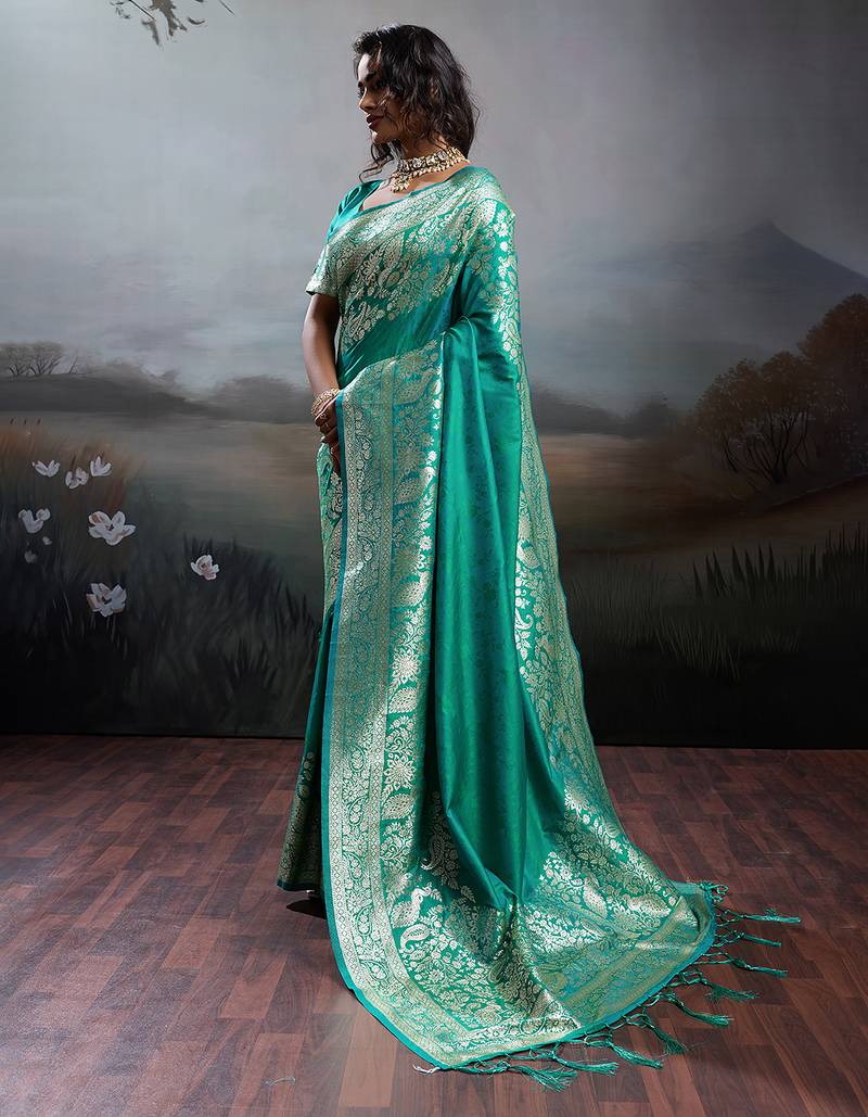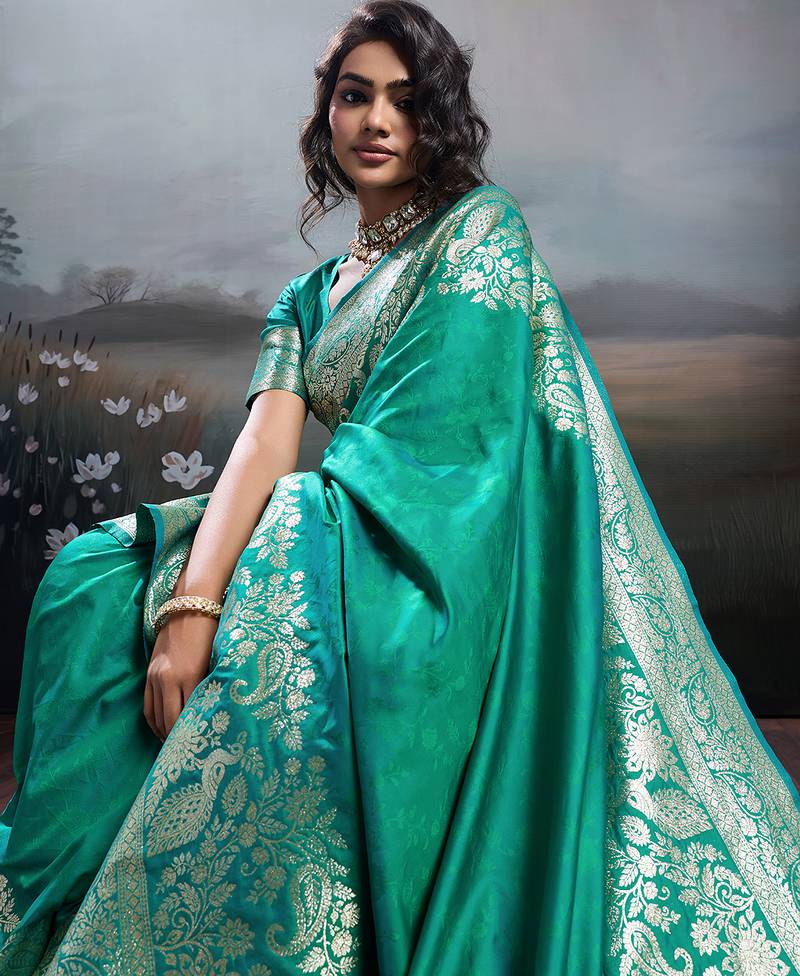 Rama color silk blend fabric woven designer partywear saree