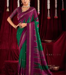 Rani pink & green color ikkat art silk fabric designer zig zag printed traditional party looks saree