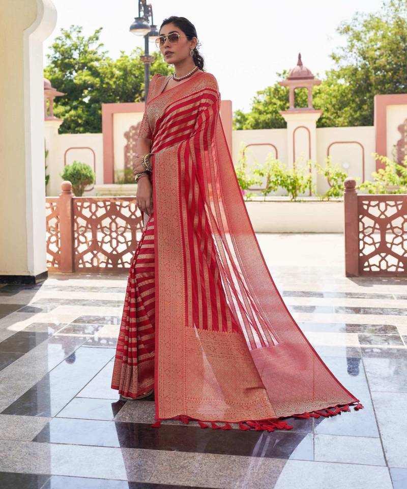 | Product Name | Red Color Beautiful Woven Designer Partywear Ethnic Saree | |