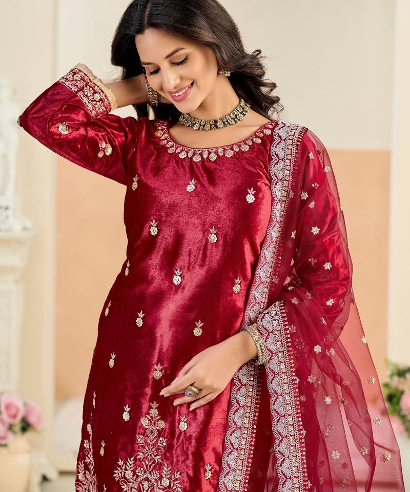 | Product Name | Red Color Festive Special Velvet Fabric Ethnic Embroidered Partywear Suit | |