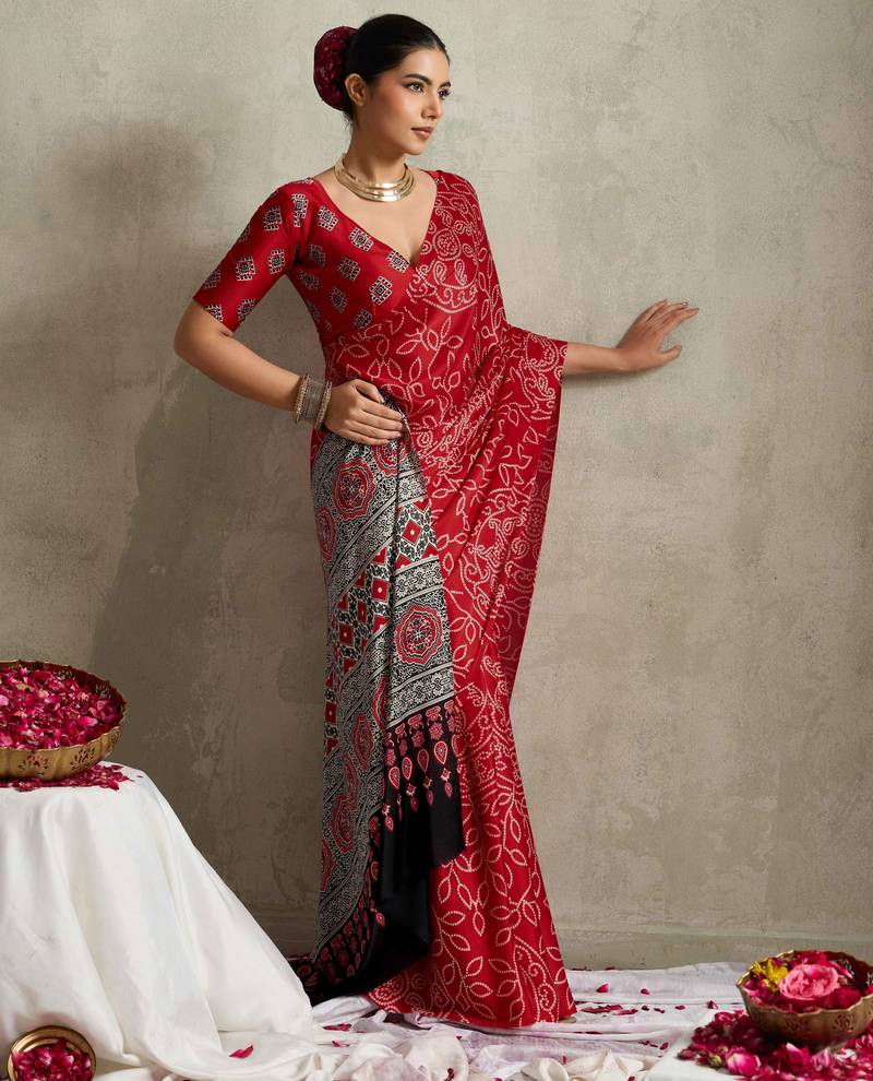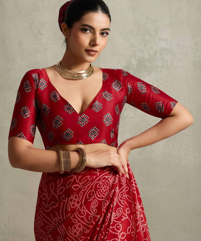 | Product Name | Red Color Rich Looks Designer Bandhani Printed Elegant Festive Saree | |