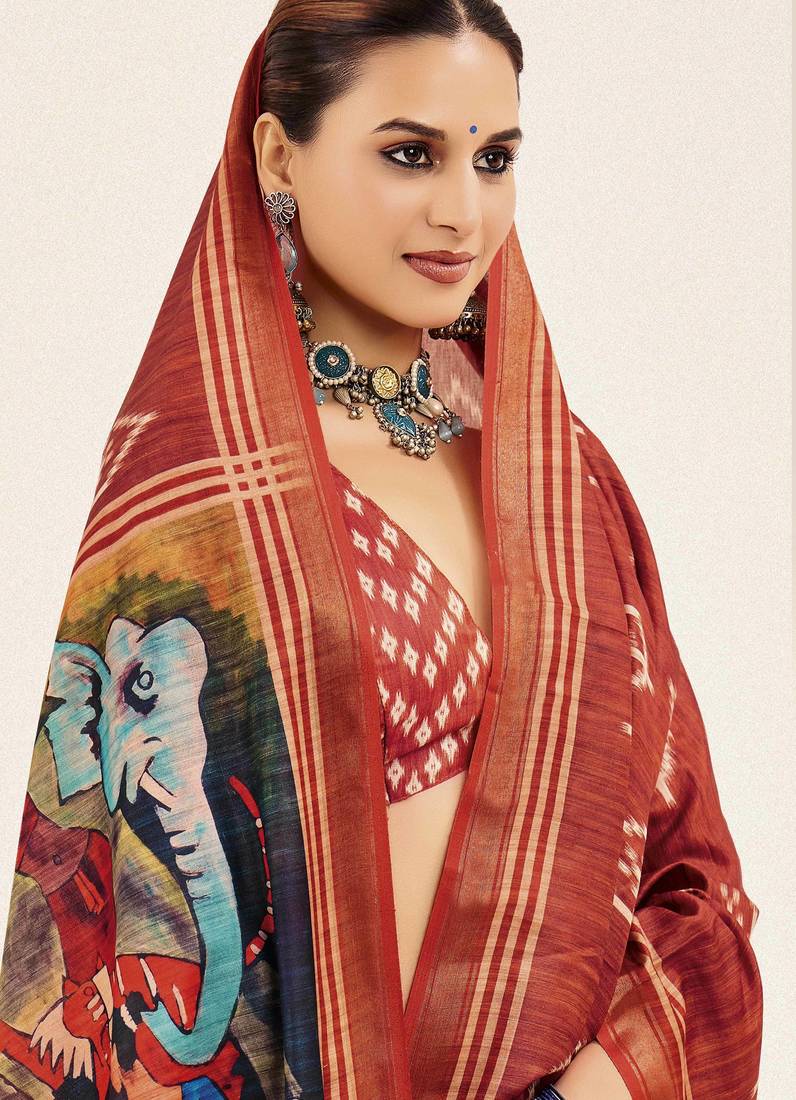 | Product Name | Rust Color Cotton Art Silk Fabric Designer Digital Printed Saree | |