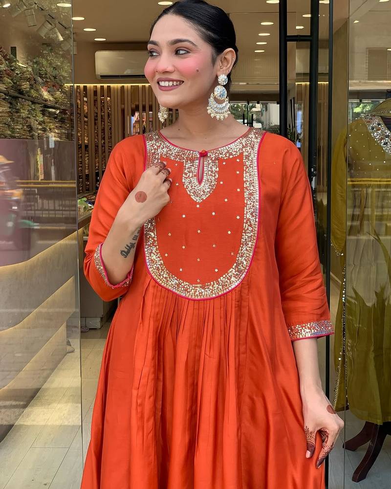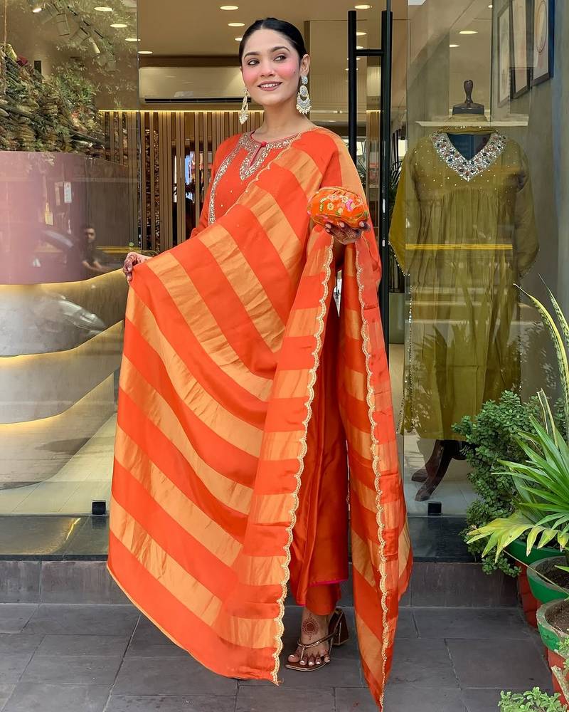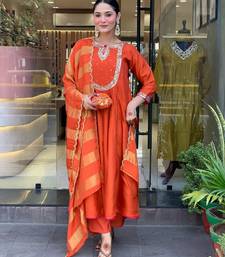 Product Name Rust Ethnic Cotton Silk Kurta Set With Dupatta