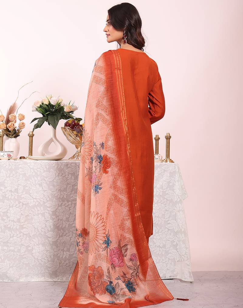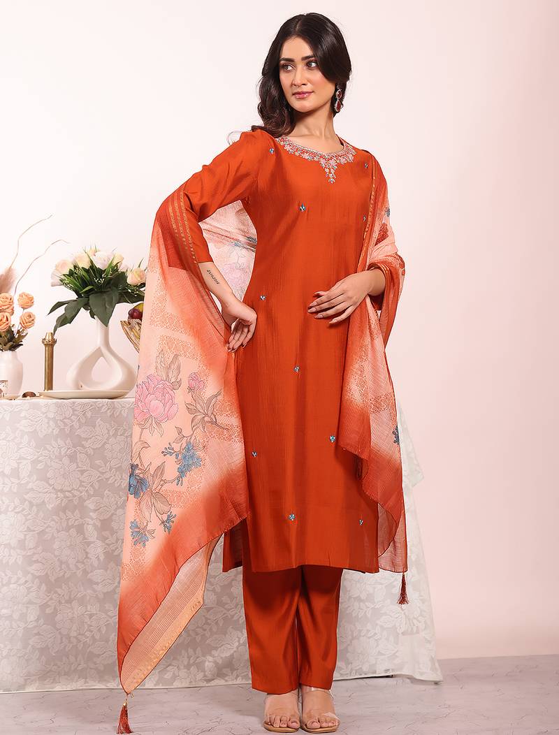 | Product Name | Rust Color Poly Silk Fabric Smart Ethnic Partywear Kurta Set | |