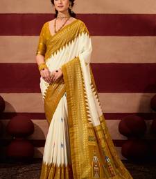 Sambhalpuri foil printed mustard color velvet tussar silk blend fabric sophisticated saree