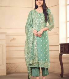 Sea green color elegant organza fabric designer embroidered suit semi stitched