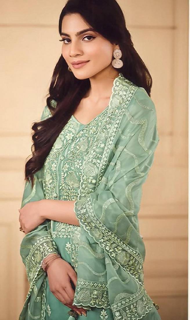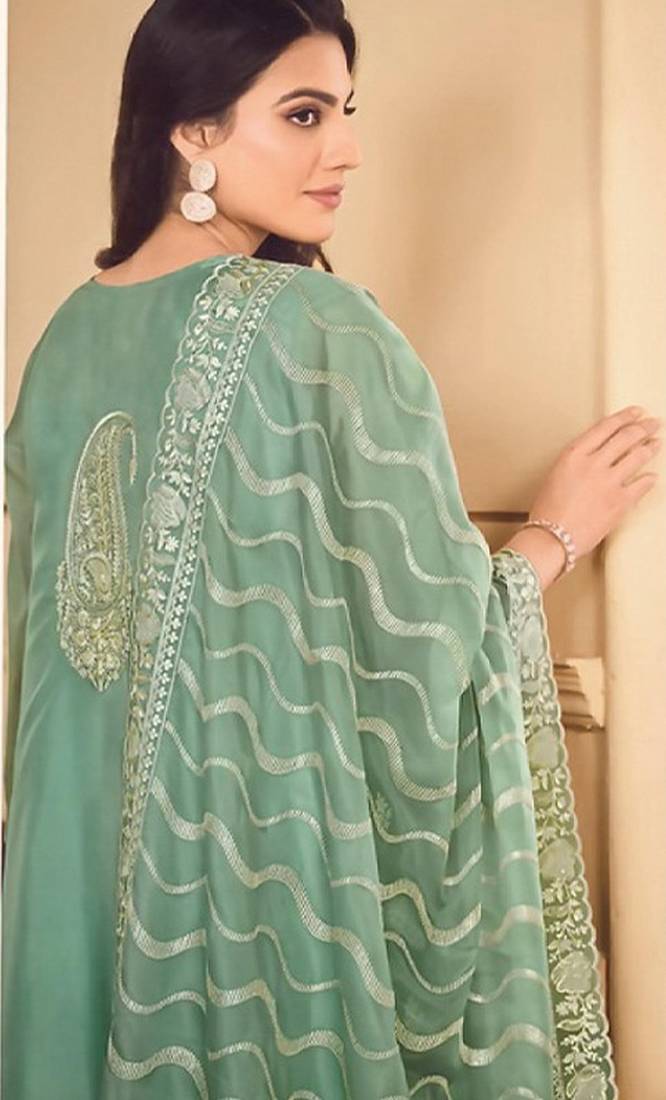 | Product Name | Sea Green Color Elegant Organza Fabric Designer Embroidered Suit | |