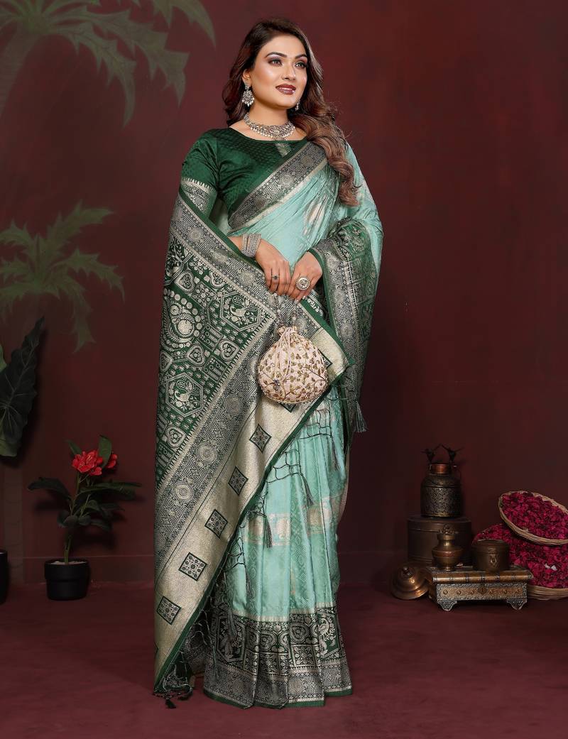 | Product Name | Sea Green Color Satin Silk Fabric Woven Jari Designer Graceful Partywear Saree | |