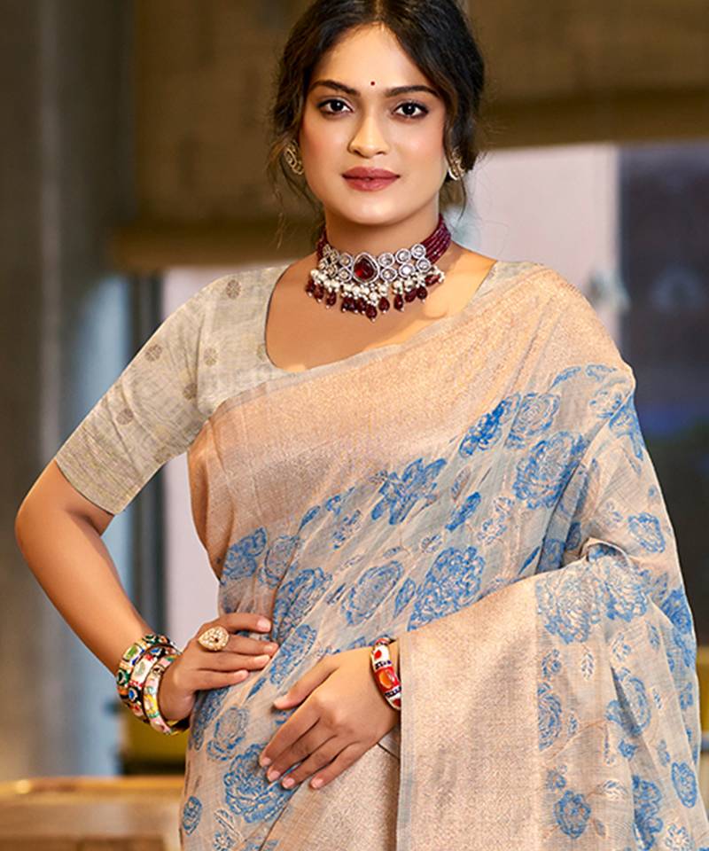 | Product Name | Sky Blue Color Cotton Silk Blend Fabric Woven Designer Ceremonial Saree | |