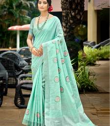 Sky blue color linen fabric woven designer saree with floral embroidered work