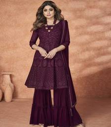 Sophesticated wine colour sharara suit for fancy and goddy looks unstitched