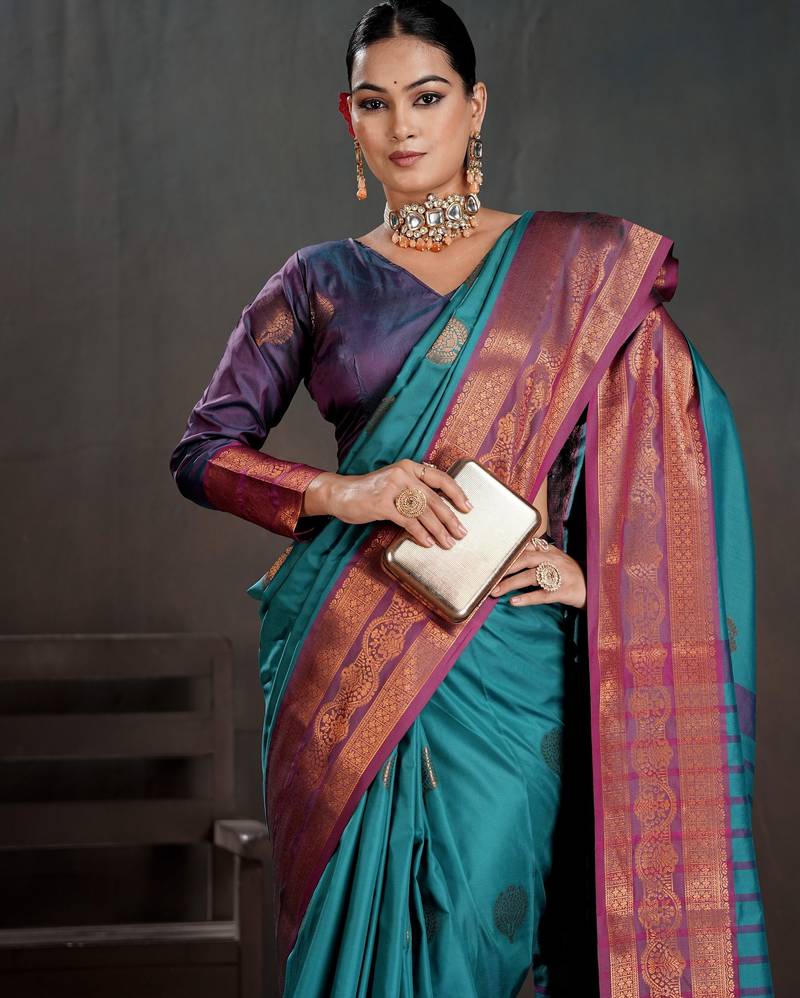 | Product Name | Teal Color Beautiful Woven Jacquard Designer Art Silk Saree | |