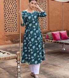 Teal color cotton fabric designer printed stylish long kurti