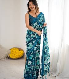 | • | Saree | : | Color- Teal / Fabric- Art Silk |