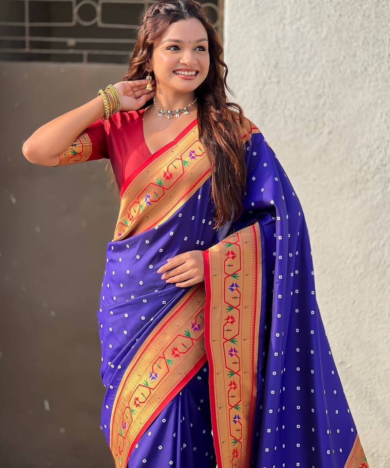 | Product Description | Garb These Party Wear Saree In Fine Colored.These Saree And Blouse Is Fabricated On Soft Silk.Its Beautified With Weaving Bandhani Jari, Rich Paithani Meenakari Pallu Designer. |
