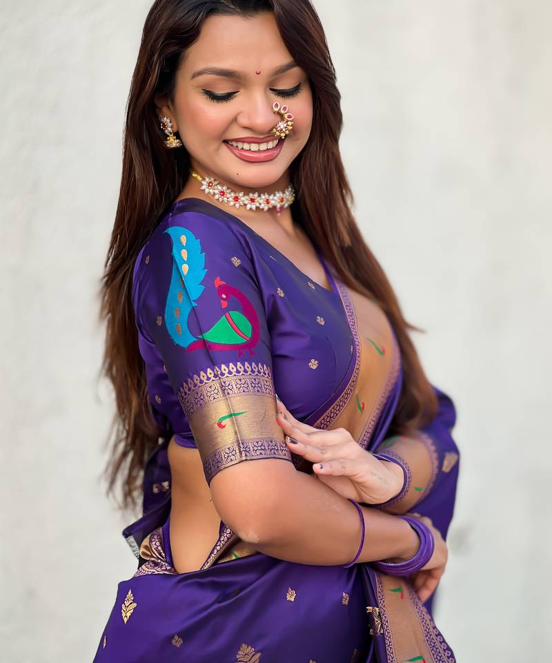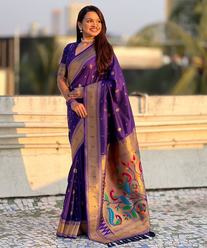 | Product Name | Violet Color Paithani Silk Fabric Beautiful Traditional Rich Saree | |