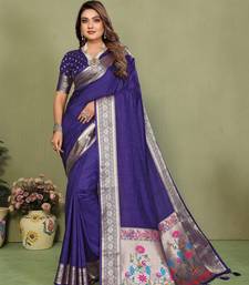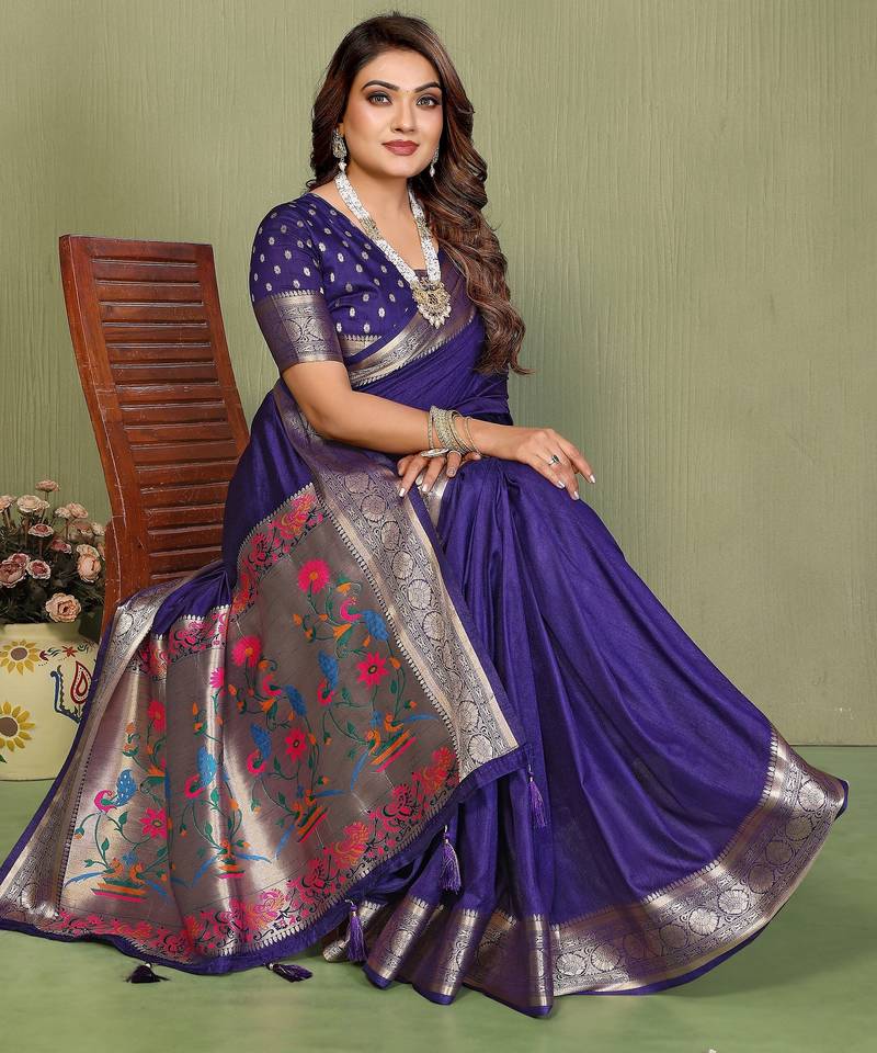 Violet color paithani silk fabric paithani woven gala designer saree