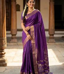 Violet color soft silk fabric woven designer saree for ethnic looks