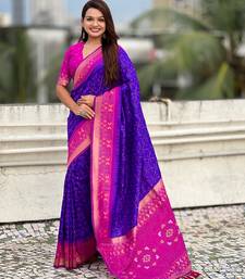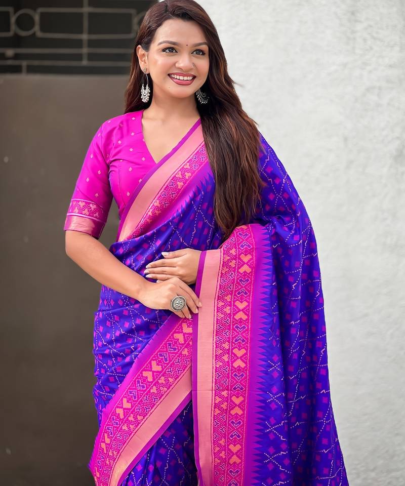 Violet color woven meenakari ikkat designer patola silk saree