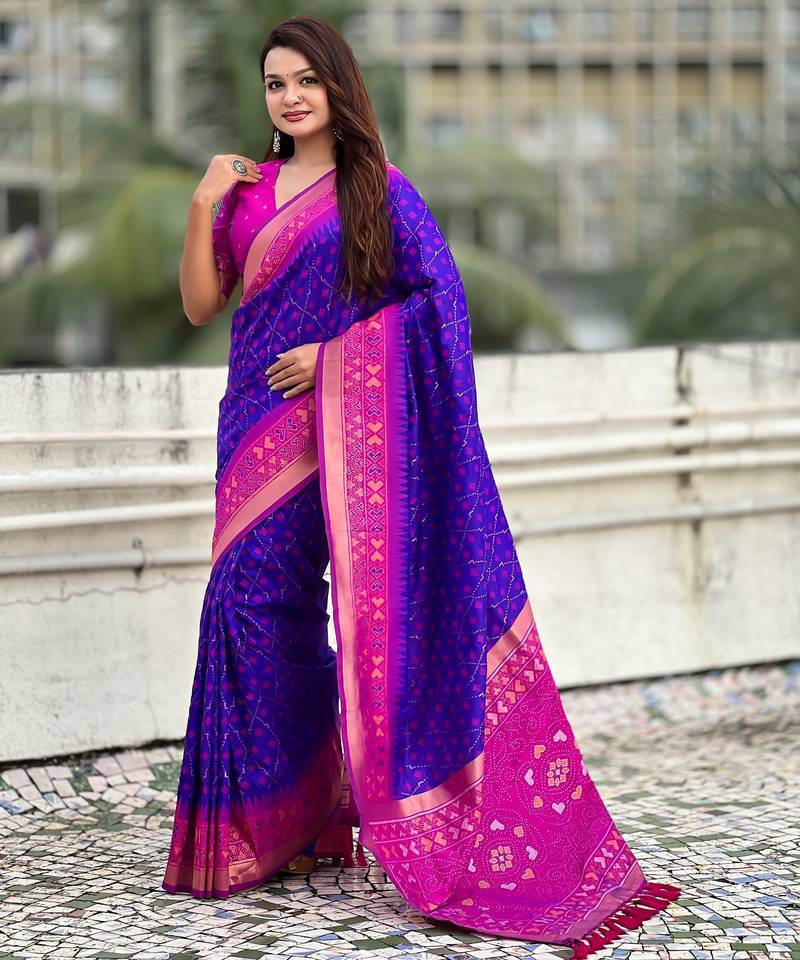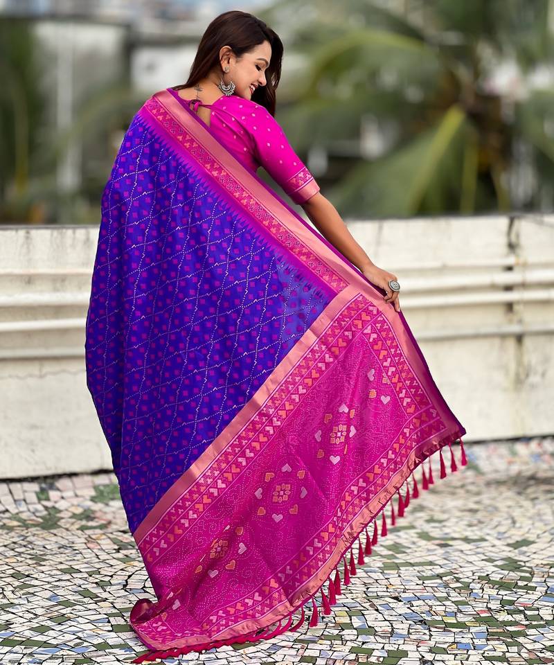 | Product Name | Violet Color Woven Meenakari Ikkat Designer Patola Silk Saree | |