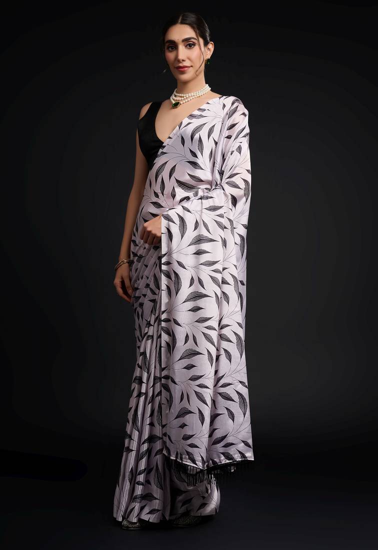 Product Name White Color Chinon Fabric Designer Prinnted Ready To Wear Saree