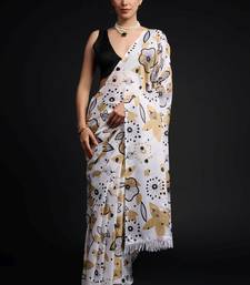 White color chinon fabric designer prinnted ready to wear saree