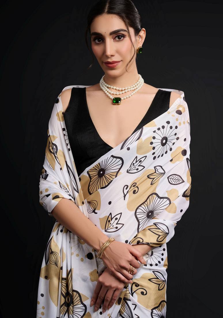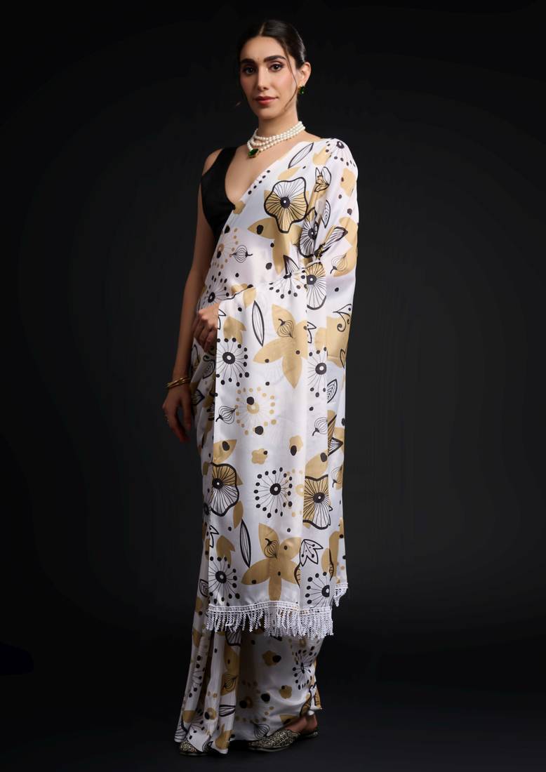 | Product Name | White Color Chinon Fabric Designer Prinnted Ready To Wear Saree | |