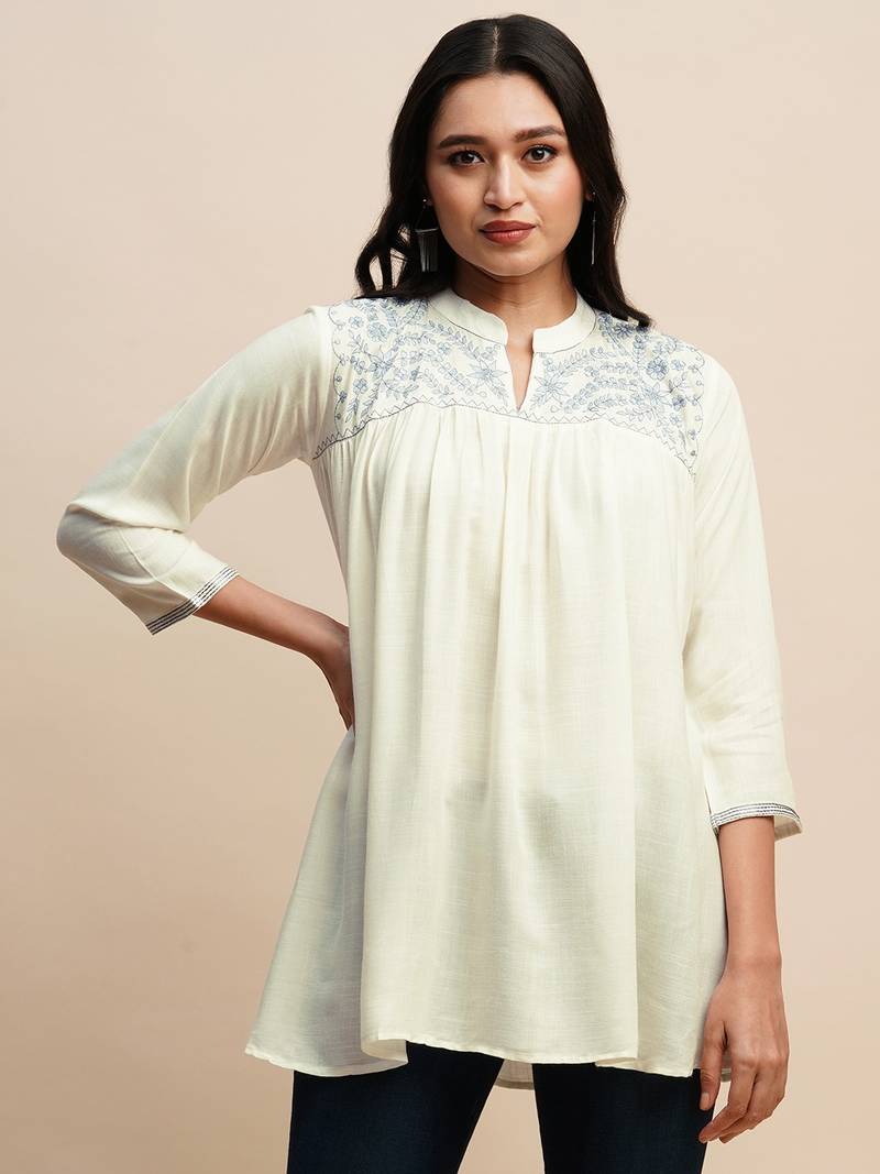 | Product Name | White Colour Short Casual Embroidered Kurti For Office Look | |