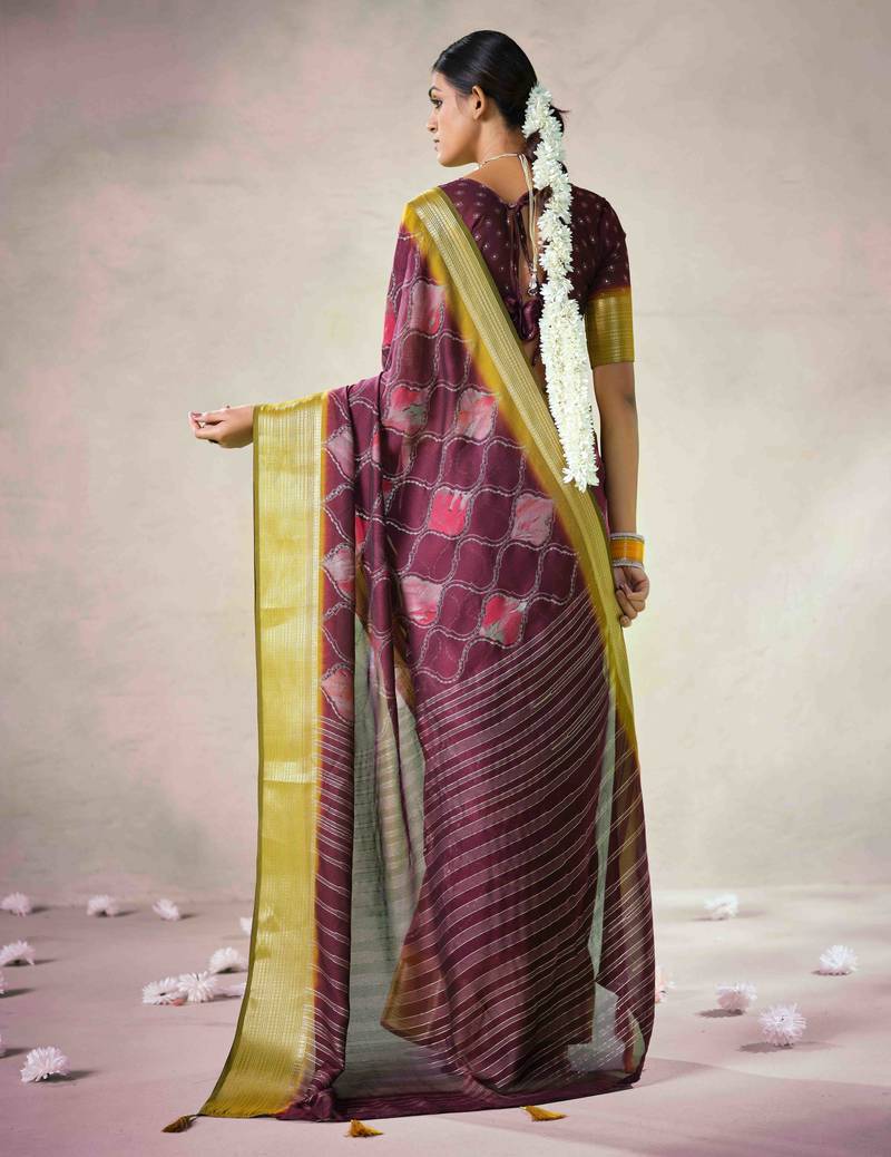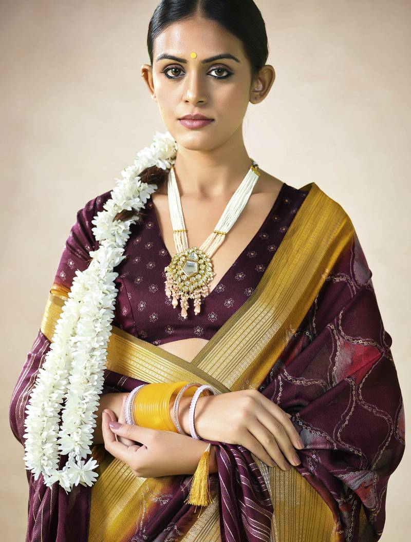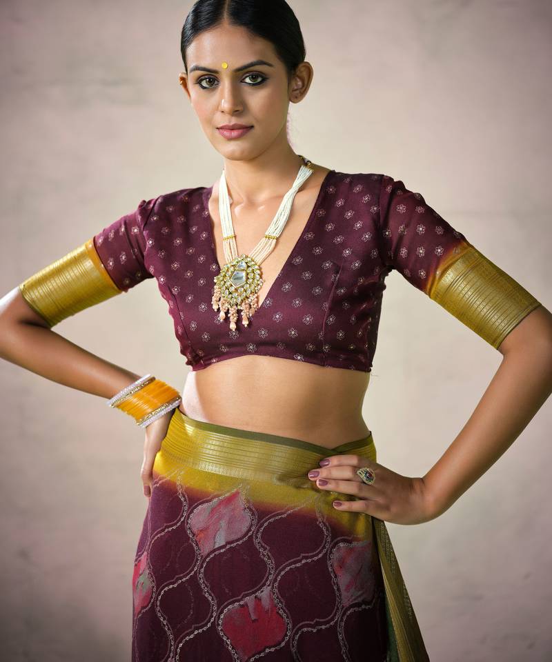 Wine color beautiful girlie woven designer saree