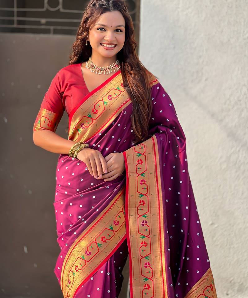 | Product Description | Garb These Party Wear Saree In Fine Colored.These Saree And Blouse Is Fabricated On Soft Silk.Its Beautified With Weaving Bandhani Jari, Rich Paithani Meenakari Pallu Designer. |