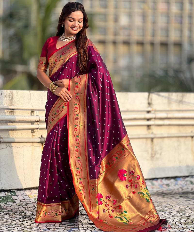 Wine color beautiful soft silk blend woven designer partywear saree