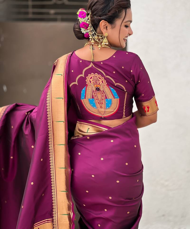 | Product Name | Wine Color Soft Silk Blend Fabric Woven Paithani Designer Cultural Rich Saree | |