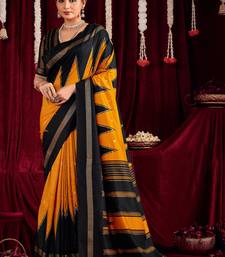 Yellow & black color ikkat art silk fabric designer zig zag printed traditional party looks saree