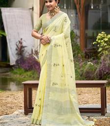 Yellow color beautiful linen fabric sophisticated ethnic saree