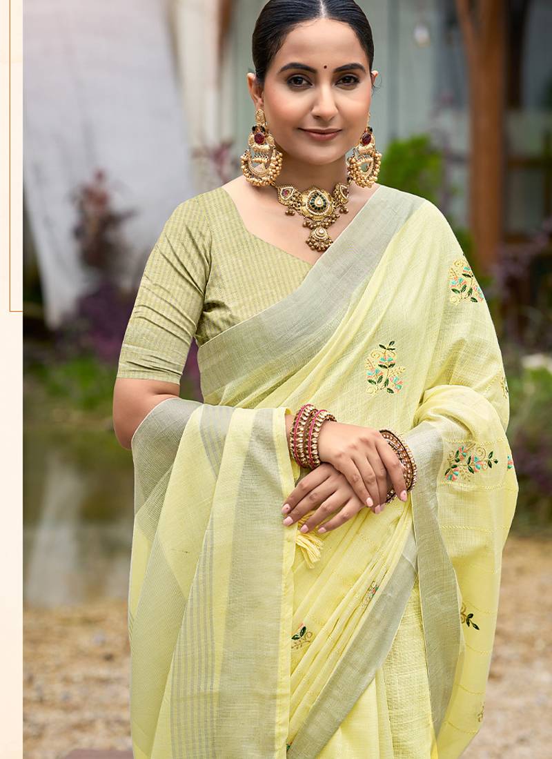 | Product Name | Yellow Color Beautiful Linen Fabric Sophisticated Ethnic Saree | |