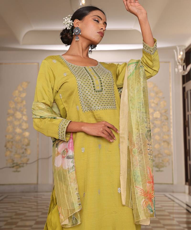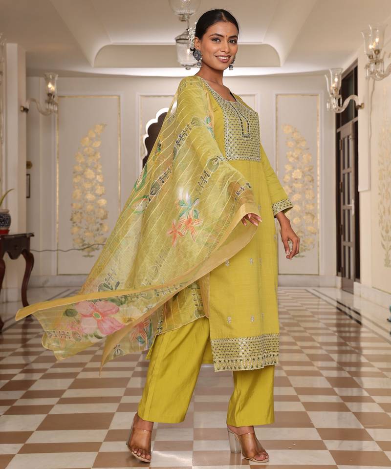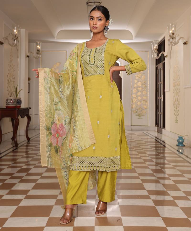 | Product Name | Yellow Color Cotton Silk Fabric Embroidered Kurta Set | |