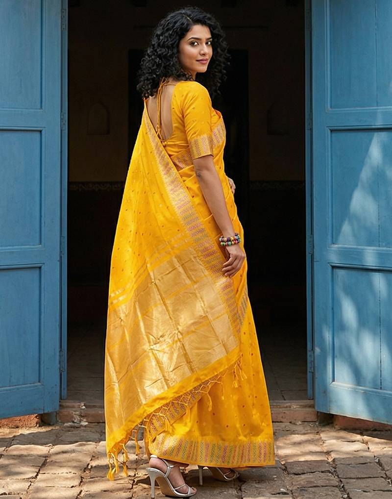 | Product Name | Yellow Color Silk Blend Woven Designer Fabric Ceremonial Saree | |