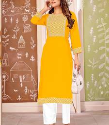 Yellow color smart rayon fabric kurta with bottom for formal office looks