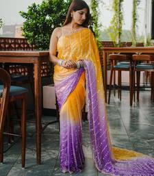 Yellow color trendy fendy satin fabric pedding with beads hand work saree