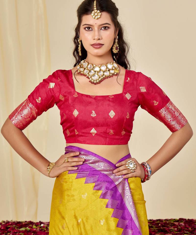 | Product Name | Yellow Color Velvet Tussar Silk Blend Fabric Woven Saree With Smart Elegant Print | |