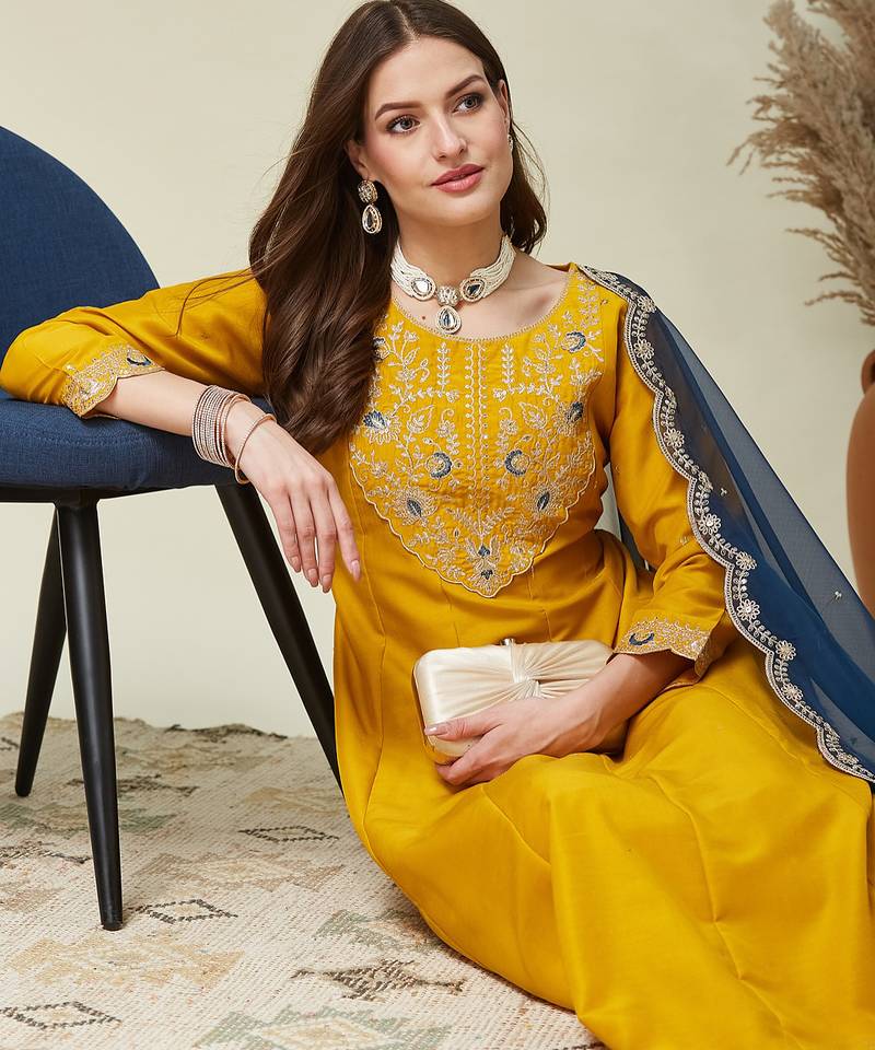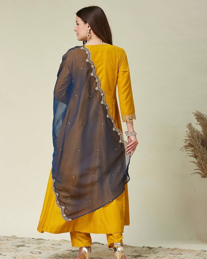 | Product Name | Yellow Color Vichitra Fabric Beautiful Partywear Dress For Girls | |